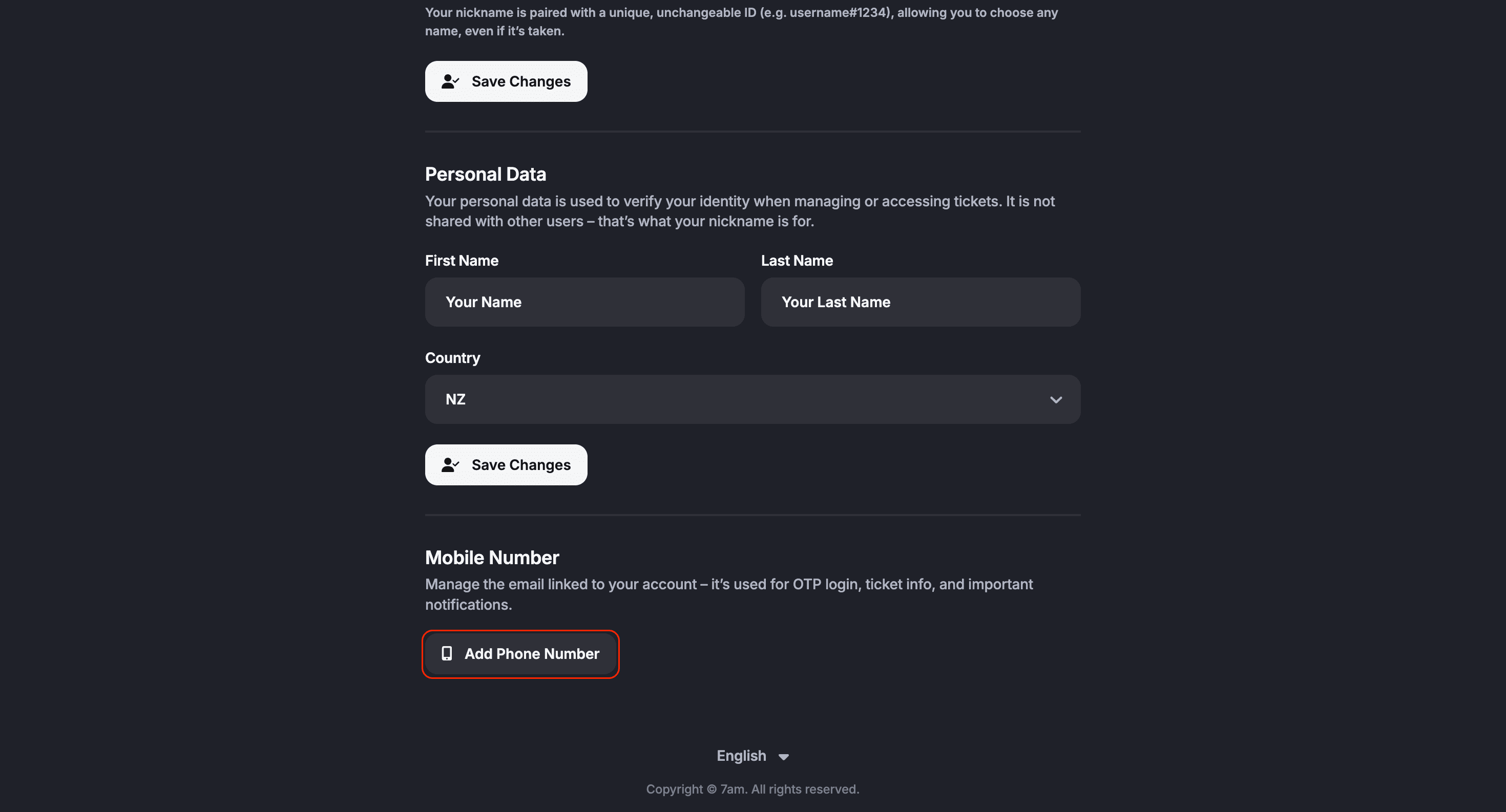 Enter your preferred ‘Nickname’ in the field provided. Click ‘Save Changes’ to confirm.