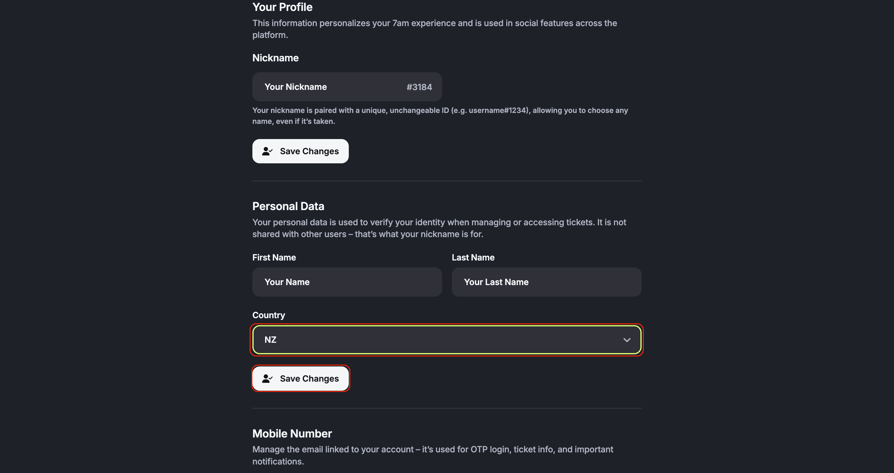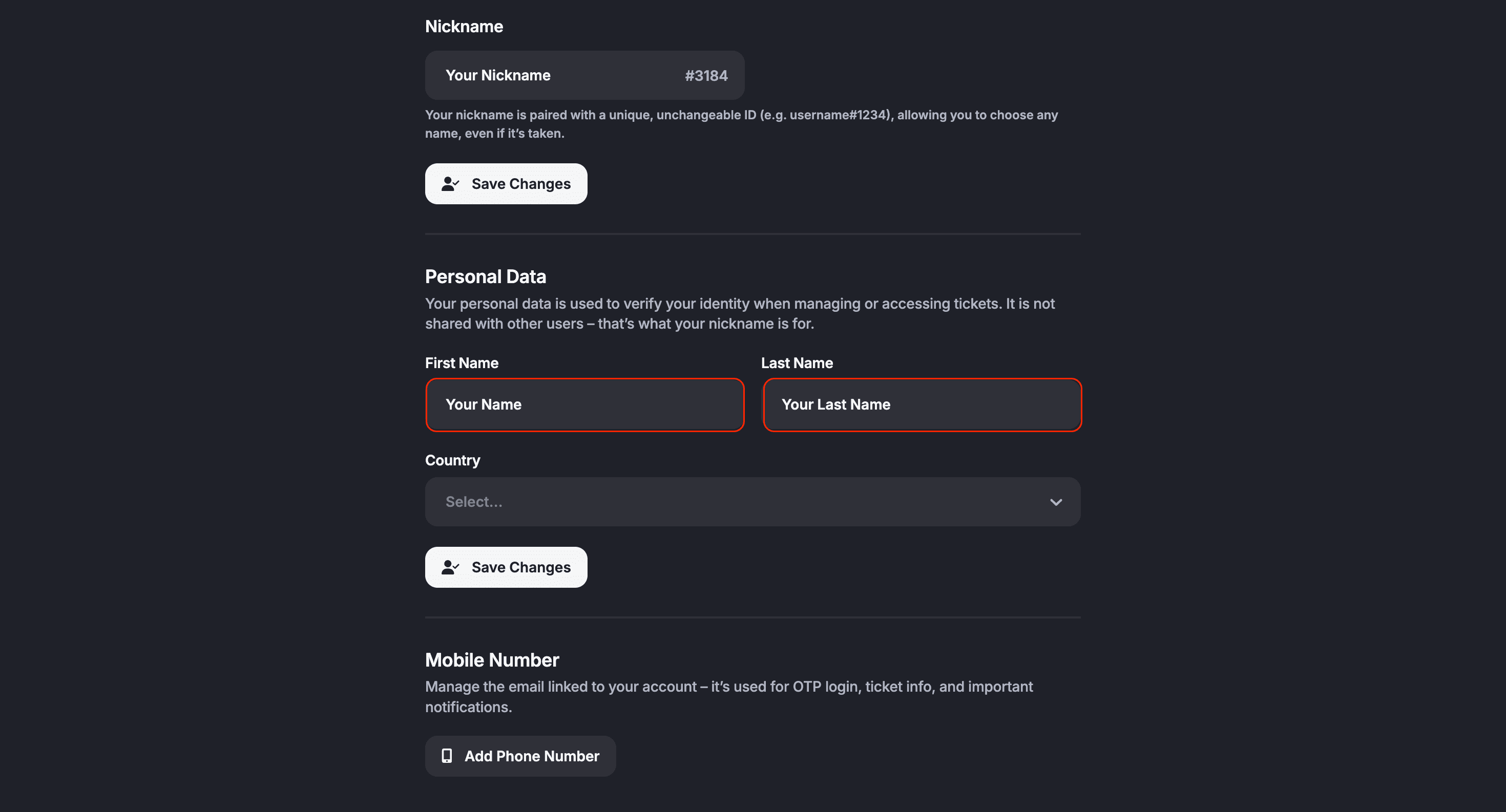 Here, you can also manually update the country linked to your account. This is important if you are reselling a ticket.