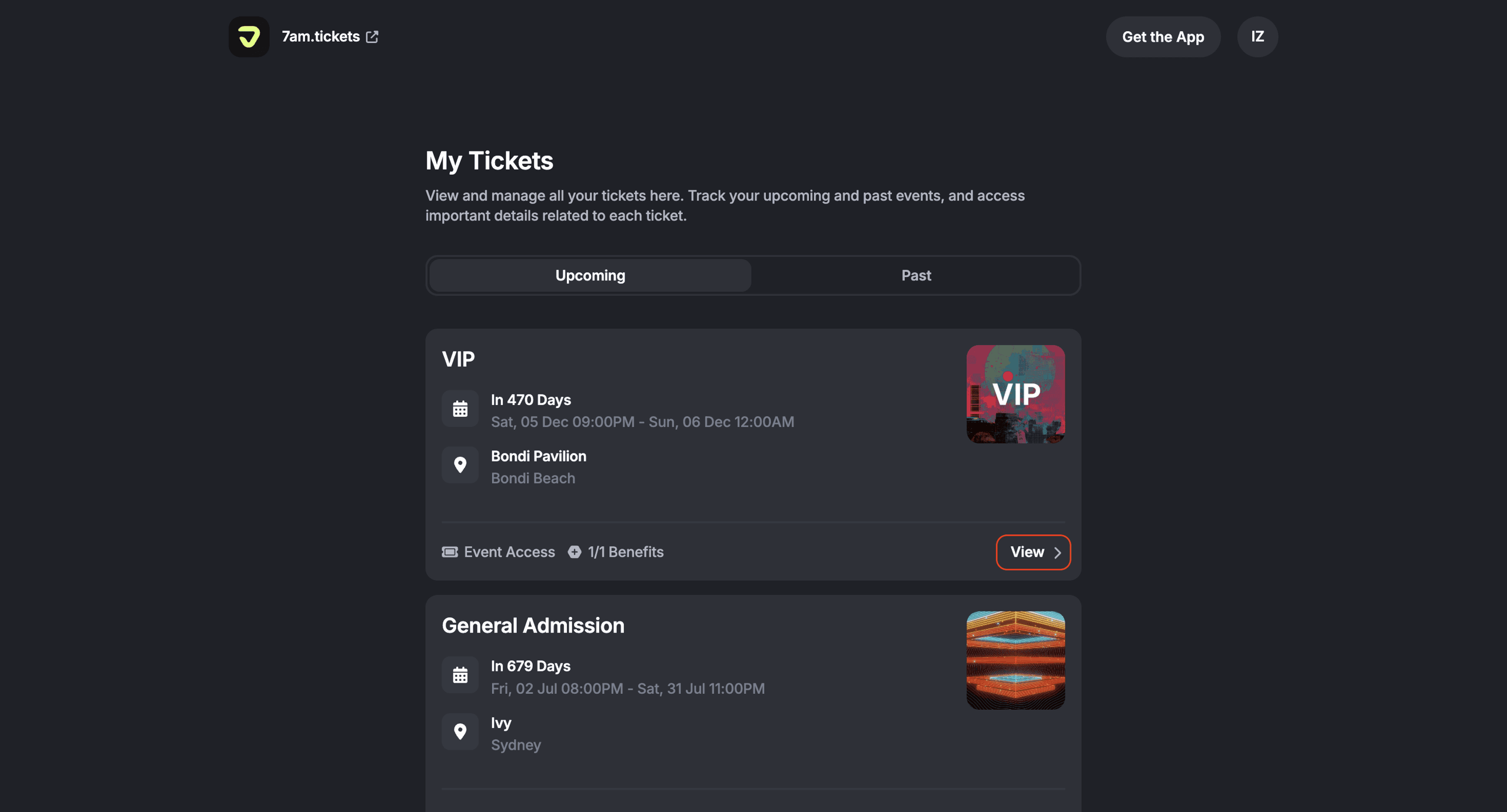 Click ‘View’ on the ticket you want to open to see all the details, including the event date, time, and the benefits included.