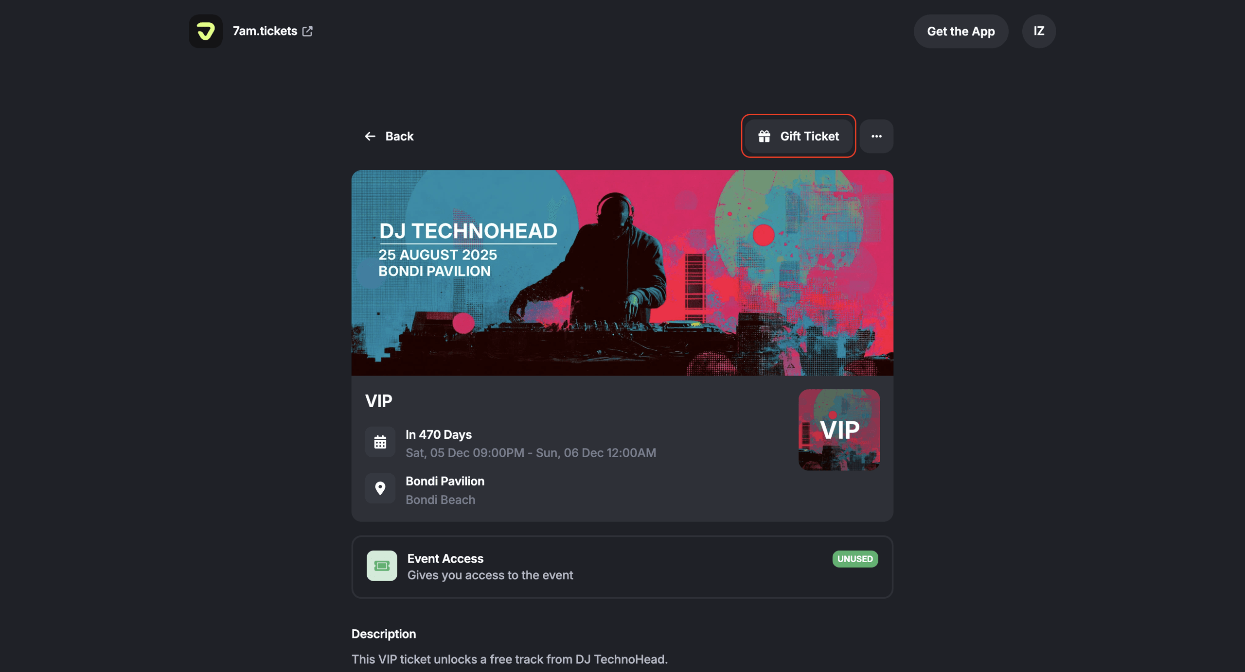 Once you’re inside the specific ticket, you can click ‘Gift Ticket’ if you want to send it to a friend or family member.