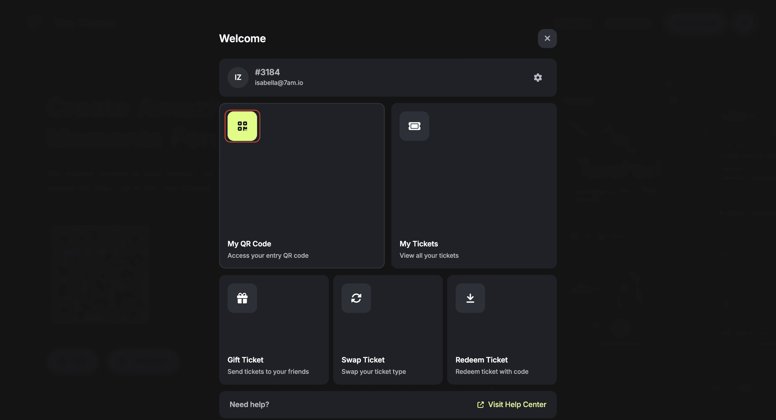 The Ticket Hub is where you log in to manage your tickets. Here, you can easily view your QR code for event entry and keep your ticket details in one place.