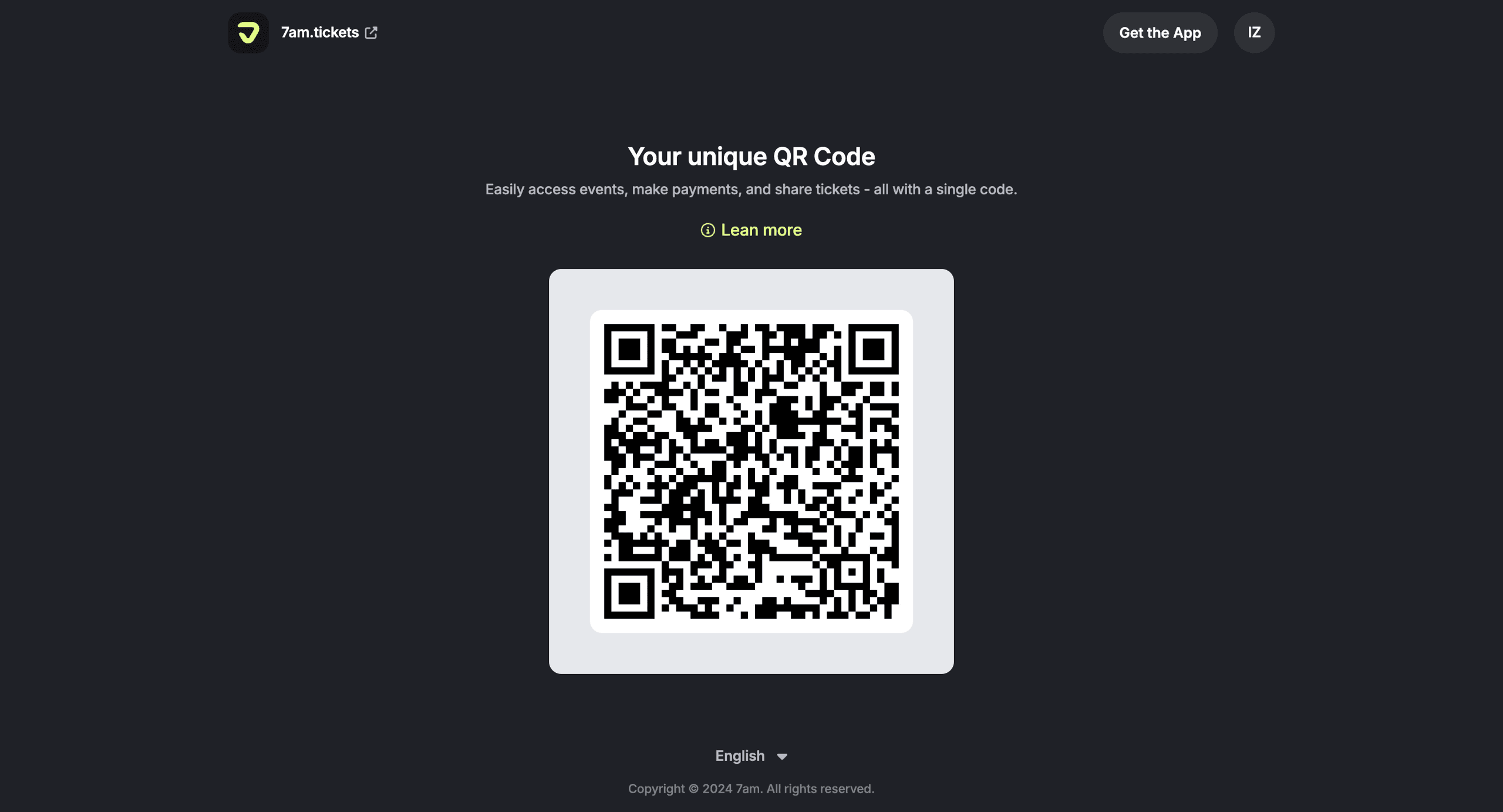 IMPORTANT: This is your personal QR code — your digital key. It's your access to all your tickets, add-ons, and perks across the 7am platform, so don't share it with anyone!